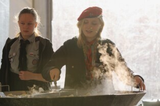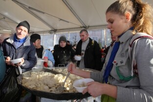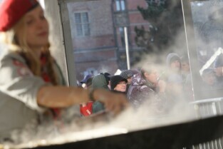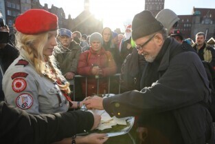 Na Targu Węglowym w Gdańsku odbyła się Wigilia dla Potrzebujących. Nz Harcerka Karolina Chmielewska i Radny Piotr Dzik.