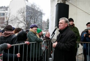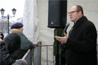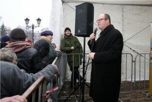 Wigilia dla ubogich samotnych i potrzebujących. Gdańsk, Targ Węglowy. Nz. Przewodniczący Rady Miasta Gdańska Bogdan Oleszek