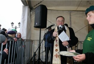 Wigilia dla ubogich samotnych i potrzebujących. Gdańsk, Targ Węglowy. Nz. ksiądz infuat ksiądz infuat Stanisław Bogdanowicz
