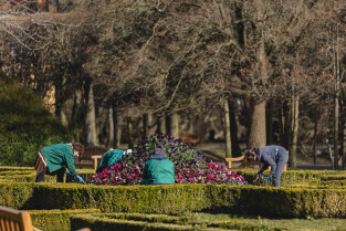 Gdańsk, Park Oliwski. Wiosenne porządkowanie miasta. W briefingu wzięli udział, Piotr Kryszewski, dyrektor zarządzający ds. Zielonego Gdańska, Barbara Tusk‑Krajewska, dyrektor Gdańskiego Zarządu Zieleni, Anna Wołodźko, dyrektor Wydziału Gospodarki Komunalnej