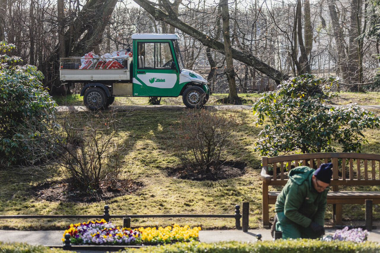 Gdańsk, Park Oliwski. Wiosenne porządkowanie miasta. W briefingu wzięli udział, Piotr Kryszewski, dyrektor zarządzający ds. Zielonego Gdańska, Barbara Tusk‑Krajewska, dyrektor Gdańskiego Zarządu Zieleni, Anna Wołodźko, dyrektor Wydziału Gospodarki Komunalnej