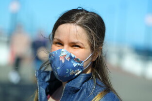 Gdańsk. Wiosna 2020 w maseczkach. Nz. Prezydent Gdańska Aleksandra Dulkiewicz.