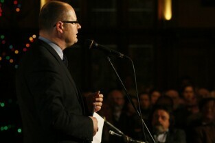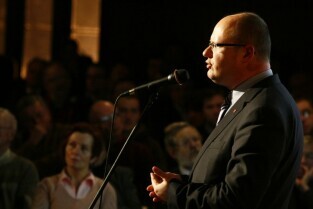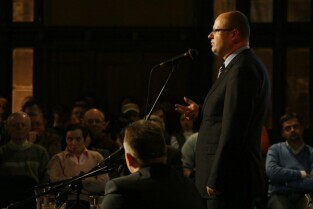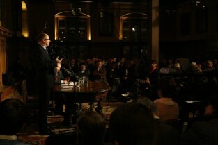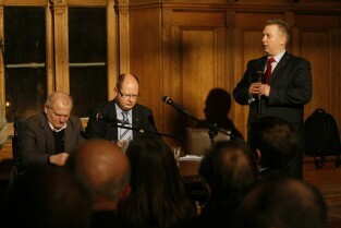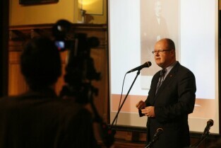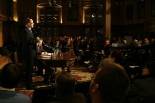 Gdańsk, Ratusz Staromiejski. Konferencja pt. "Wizja Miasta - Gdańsk, metropolia czy prowincja" z udziałem Prezydenta Gdańska Pawła Adamowicza i jego zastępców: Andrzeja Bojanowskiego i Wiesława Bielawskiego