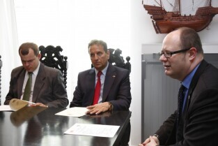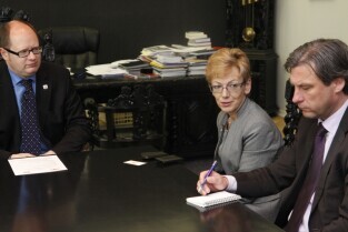 Urząd Miejski w Gdańsku. Spotkanie Prezydenta Gdańska Pawła Adamowicza z Ambasadorem Republiki Litewskiej, panią Loretą Zakarevicziene.