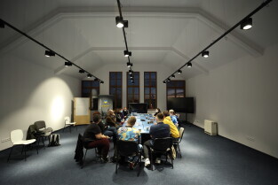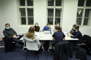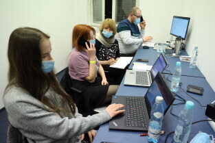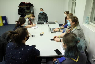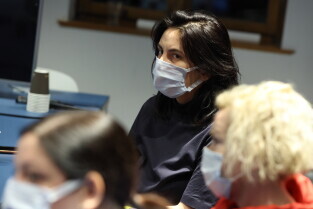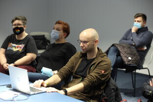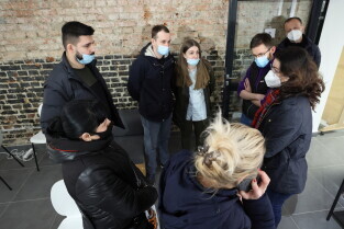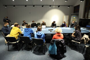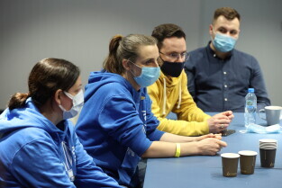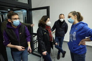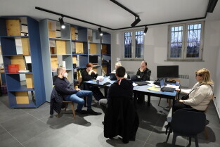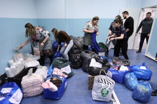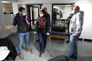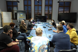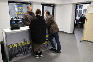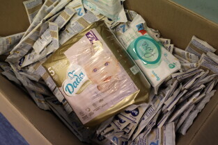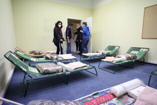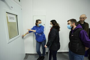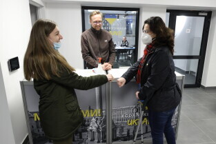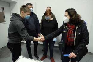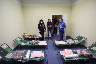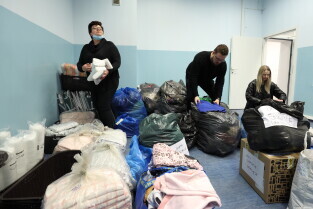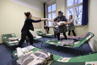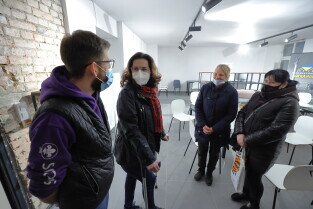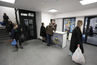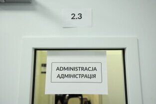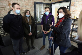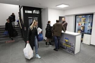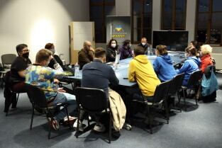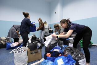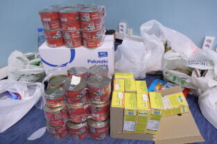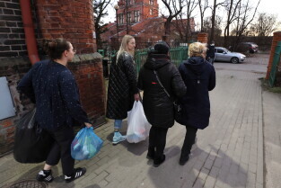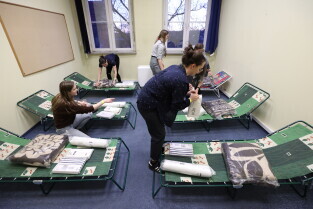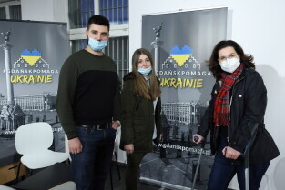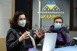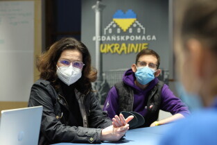 Gdańsk.Wizyta Prezydent Gdańska Aleksandry Dulkiewicz w punktach Gdańsk Pomaga Ukrainie. Nz. Centrum koordynacji akcji przy ul. Dolna Brama.