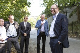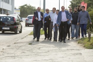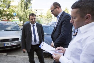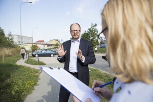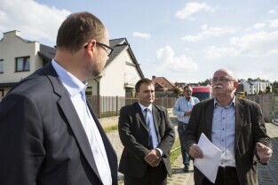 Wizyta Prezydenta Gdańska Pawła Adamowicza i jego współpracowników w dzielnicy Piecki-Migowo, poprzedzająca spotkanie z mieszkańcami tej części Gdańska