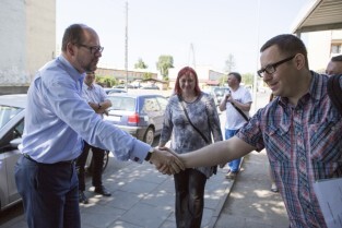 Wizyta Prezydenta Gdańska Pawła Adamowicza i jego współpracowników w dzielnicy Stogi, poprzedzająca spotkanie z mieszkańcami tej części Gdańska. Nz. po prawej Przewodniczący Rady Dzielnicy Stogi Sławomir Szczygielski