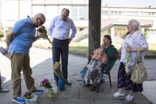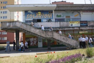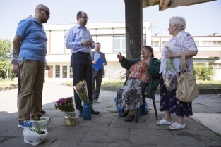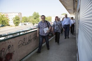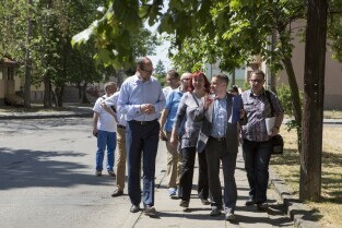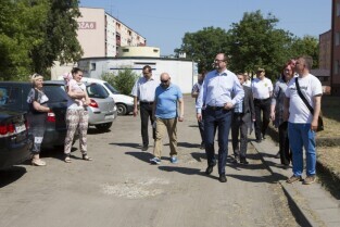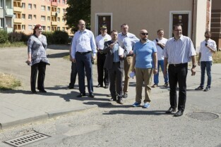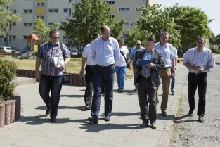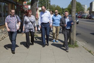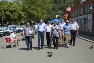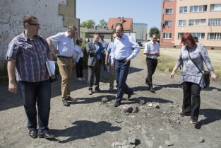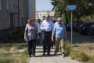 Wizyta Prezydenta Gdańska Pawła Adamowicza i jego współpracowników w dzielnicy Stogi, poprzedzająca spotkanie z mieszkańcami tej części Gdańska