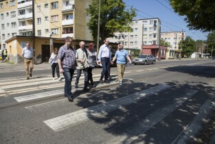 Wizyta Prezydenta Gdańska Pawła Adamowicza i jego współpracowników w dzielnicy Stogi, poprzedzająca spotkanie z mieszkańcami tej części Gdańska. Nz. od lewej: Przewodniczący Rady Dzielnicy Stogi Sławomir Szczygielski, Dyrektor ZDiZ Mieczysław Kotłowski, Prezydent Gdańska Paweł Adamowicz, Przewodnicząca Zarządu Dzielnicy Stogi Magdalena Wiszniewska