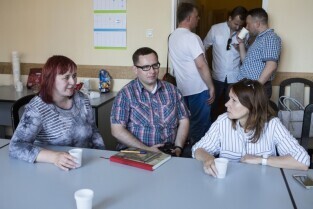 Wizyta Prezydenta Gdańska Pawła Adamowicza i jego współpracowników w dzielnicy Stogi, poprzedzająca spotkanie z mieszkańcami tej części Gdańska. Nz. od lewej: Prezydent Gdańska Paweł Adamowicz, Przewodnicząca Zarządu Dzielnicy Stogi Magdalena Wiszniewska, Z-ca Dyrektora Gdańskiego Zarządu Nieruchomości Komunalnych Waldemar Rydlewski