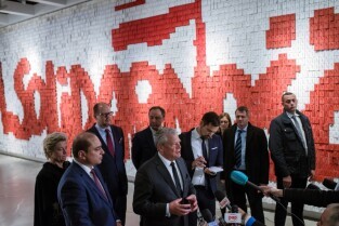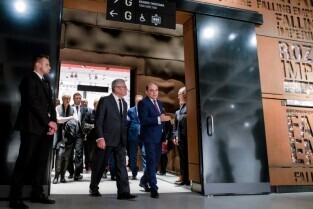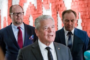 Wizyta Prezydenta Niemiec Joachima Gaucka w ECS. Nz w tle prezydent Gda�ska Pawe� Adamowicz, Marsza�ek Woj. Pomorskiego Mieczys�aw Struk.