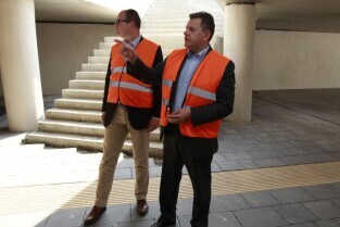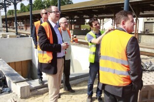 Dziś Prezydent Gdańska Paweł Adamowicz w towarzystwie Prezesa Zarządu SKM Macieja Lignowskiego odwiedził teren budowy przystanku SKM Gdańsk Śródmieście oraz remontowane perony SKM na Dworcu Głównym w Gdańsku.