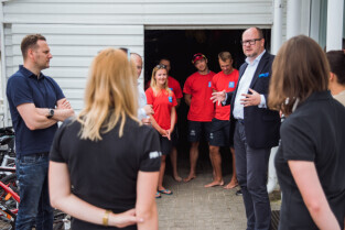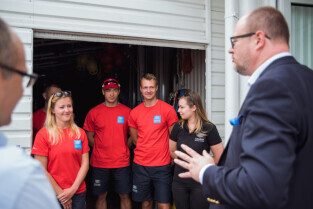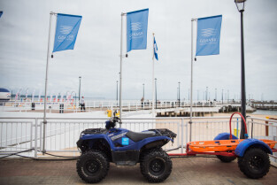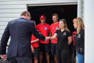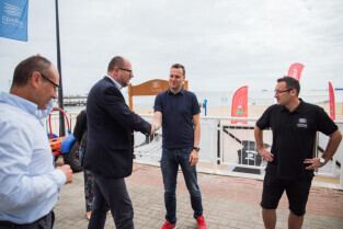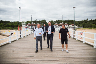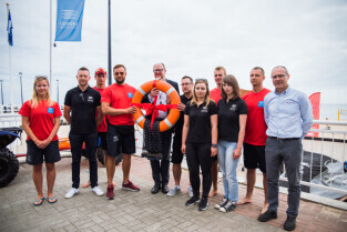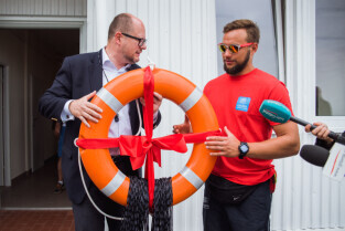 Gdańsk. Centrum Ratownictwa Wodnego w Brzeźnie. Nz. Dyrektor GOS – Leszek Paszkowski, Paweł Adamowicz Prezydent Miasta Gdańska i Grzegorz Pawelec (GOS)