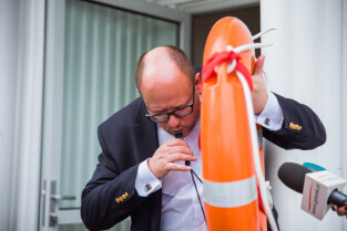 Gdańsk. Centrum Ratownictwa Wodnego w Brzeźnie. Nz. Paweł Adamowicz Prezydent Miasta Gdańska