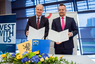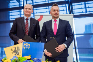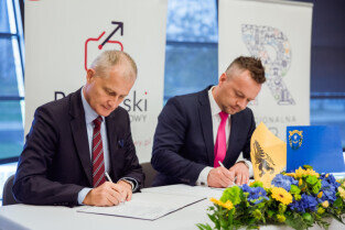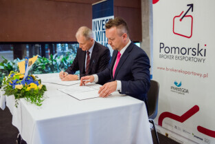 Gdańsk. Ecs. Wizyta delegacji gospodarczej ze Stanów Zjednoczonych na Pomorzu. Nz. (L) Sławomir Halbryt, Jakub Mędrala (P)