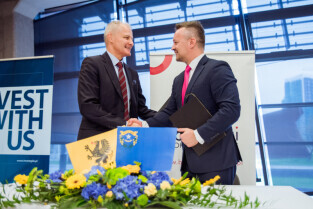 Gdańsk. Ecs. Wizyta delegacji gospodarczej ze Stanów Zjednoczonych na Pomorzu. Nz. Wiesław Byczkowski Wicemarszałek Województwa Pomorskiego i Gubernator stanu Nevada Brian Sandoval