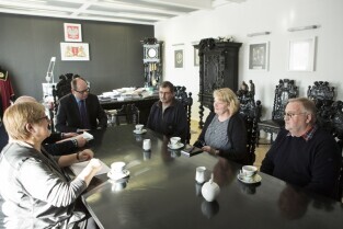 Urząd Miejski w Gdańsku. Spotkanie Prezydenta Gdańska Pawła Adamowicza z przedstawicielami fabryki zegarów Ed. Korfhage & Sohne, która na początku XX w. była popularnym wykonawcą pomorskich zegarów