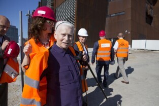 Wizyta byłego Prezydenta RP Lecha Wałęsy na budowie Europejskiego Centrum Solidarności w Gdańsku. Po lewej prof. Joanna Muszkowska-Penson