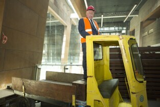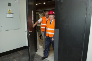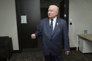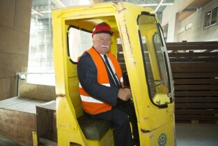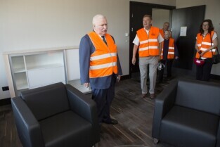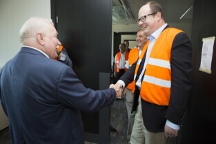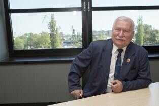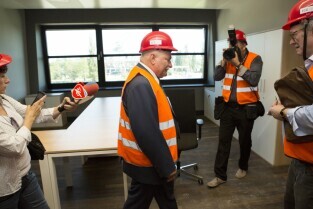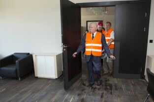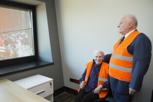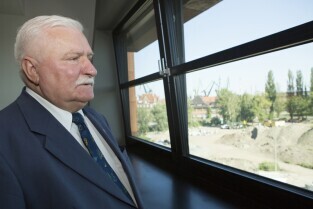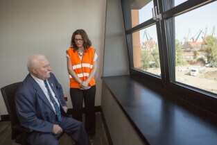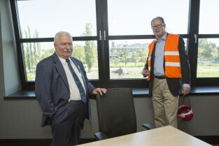 Wizyta byłego Prezydenta RP Lecha Wałęsy w swoim nowym biurze w budowanym Europejskim Centrum Solidarności w Gdańsku