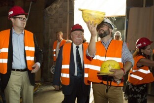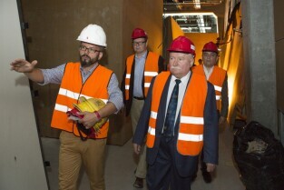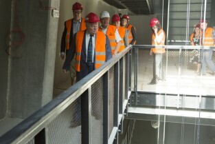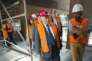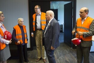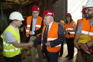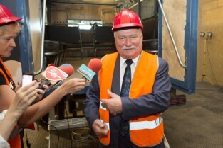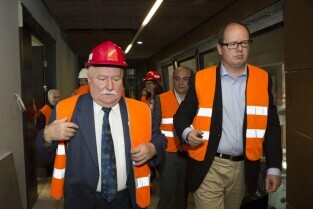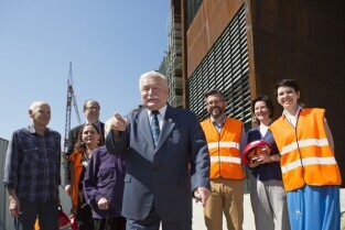 Wizyta byłego Prezydenta RP Lecha Wałęsy na budowie Europejskiego Centrum Solidarności w Gdańsku