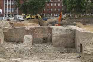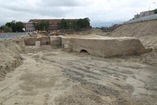 Gdańsk. Spacer po placu budowy wiaduktu Biskupia Górka, zachowane fragmenty Bastionu Wiebego i Baszty Nowej.