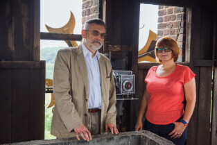 Wizyta na wieży zegarowej na Biskupiej Górce. Nz. Grzegorz Szychliński – kierownik Muzeum Nauki Gdańskiej i Agata Biały - Fundacja Gdańska