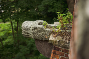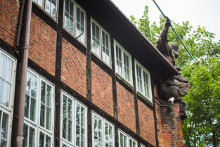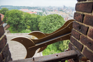 Wizyta na wieży zegarowej na Biskupiej Górce. Nz. rzygacz gdański