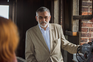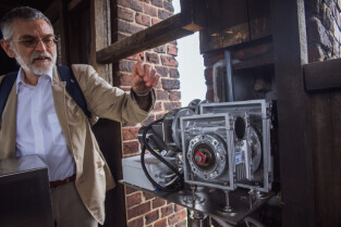 Wizyta na wieży zegarowej na Biskupiej Górce. Nz. Grzegorz Szychliński – kierownik Muzeum Nauki Gdańskiej. Znawca zegarów wieżowych.