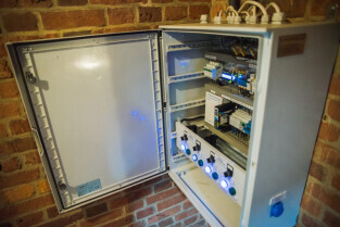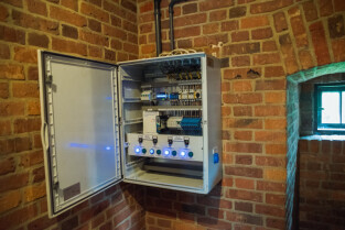 Wizyta na wieży zegarowej na Biskupiej Górce. Nz. sterownia zegara