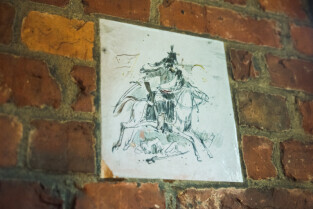 Wizyta na wieży zegarowej na Biskupiej Górce. Nz. kafel przedstawiający Czarnego Huzara