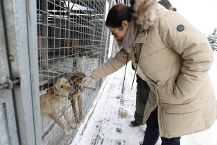 Gdańsk. Wizyta prezydent Gdańska Aleksandry Dulkiewicz w schronisku dla zwierząt Promyk.