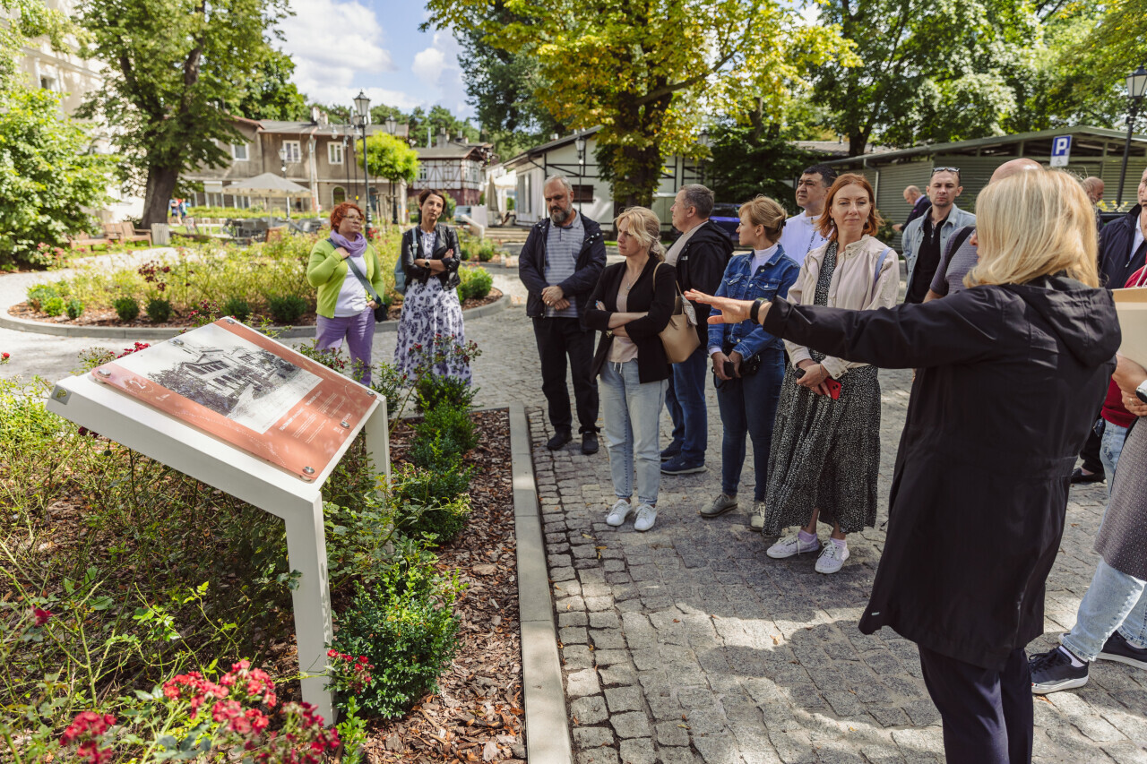 Gdańsk, Dom Zdrojowy. Wizyta studyjna 15 samorządowców z Ukrainy, zwiedzanie Domu Zdrojowego jako przykładu udanej rewitalizacji