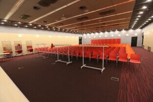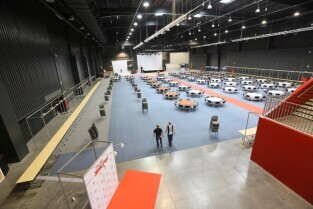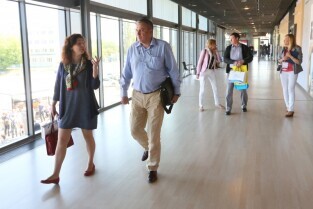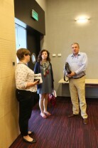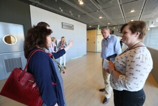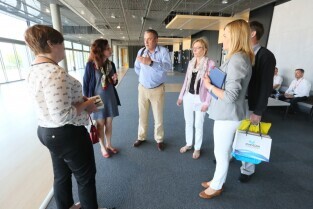 Amber EXPO. Z-ca Mera Mariupola Andrii Kargin i Oleksandr Kostenko (Dział Współpracy Zagranicznej) - samorządowcy z ukraińskiego Mariupola podczas wizyty studyjnej w Gdańsku. Zwiedzanie siedziby Międzynarodowych Targów Gdańskich.