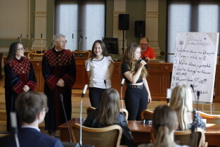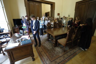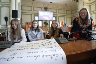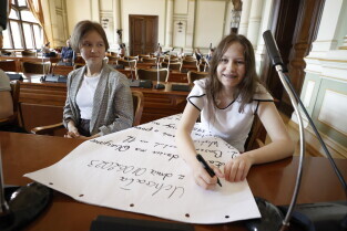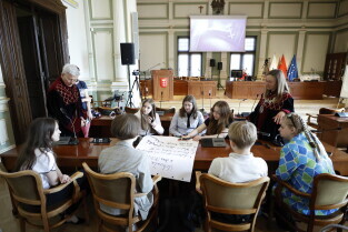 Gdańsk, Dzień dziecka. Wizyta uczniów z gdańskich szkół podstawowych w Radzie Miasta Gdańska, spotkanie z przewodniczącą Rady Miasta Gdańska Agnieszką Owczarczak i radnymi.