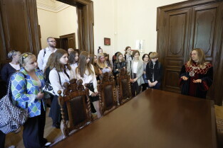 Wizyta uczniów z gdańskich szkół podstawowych w Radzie Miasta Gdańska, spotkanie z przewodniczącą Rady Miasta Gdańska Agnieszką Owczarczak