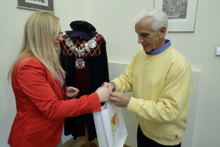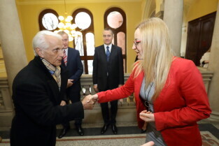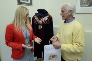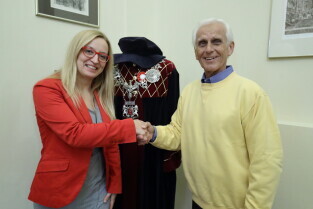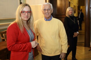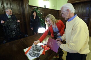 Gdańsk. Wizyta w Gdańsku Pana Arno Pirkau z Florydy. Nz. Arno Pirkau i Przewodnicząca Rady Miasta Gdańska Agnieszka Owczarczak.