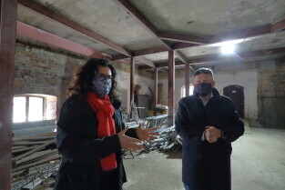 Gdańsk. Wizyta Prezydent Gdańska Aleksandry Dulkiewicz w zabytkowym Wielkim Młynie. Nz. Prezydent Gdańska Aleksandra Dulkiewicz i Dyrektor Muzeum Gdańska Waldemar Ossowski.
