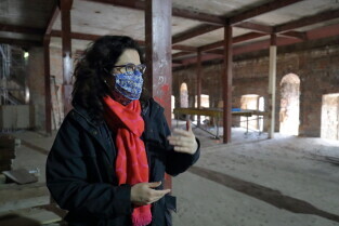 Gdańsk. Wizyta Prezydent Gdańska Aleksandry Dulkiewicz w zabytkowym Wielkim Młynie. Nz. Prezydent Gdańska Aleksandra Dulkiewicz.