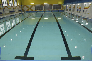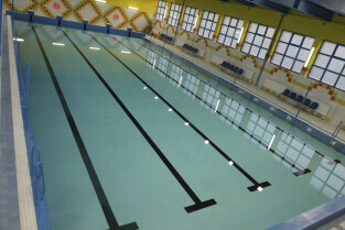 Wizyta Prezydenta Gdańska Pawła Adamowicza w gdańskim Zespole Szkół Ogólnokształcącym, ul. Subisława 22. Nz. basen po remoncie