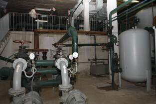 Wizyta Prezydenta Gdańska Pawła Adamowicza w gdańskim Zespole Szkół Ogólnokształcącym, ul. Subisława 22. Nz. system oczyszczania wody basenu
