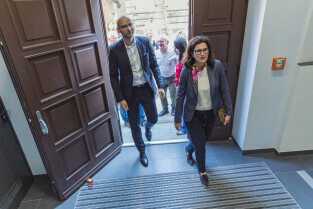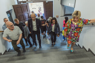 Gdańsk. Wizyta w budynku przy ul. Szczyglej 4. Mieszkańców TBS odwiedziła Prezydent Gdańska Aleksandra Dulkiewicz i wiceprezydent Piotr Kryszewski