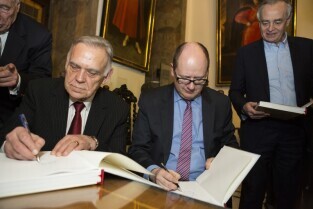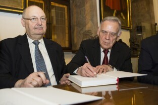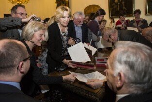 Gdańsk, Ratusz Głównego Miasta. Promocja książki "Poczet sołtysów, burmistrzów, nadburmistrzów, przewodniczących Miejskiej Rady Narodowej i prezydentów Gdańska od XIII do XXI wieku" pod redakcją Beaty Możejko