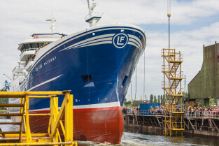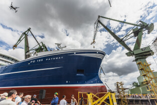 Częściowo wyposażony nowoczesny trawler zwodowano w piątek, 25 lipca, w stoczni Karstensen Shipyard Poland. Duńska firma produkuje statki wykorzystując historyczną infrastrukturę, należącą kiedyś do Stoczni Gdańskiej. Odbiorcą jednostki jest szkocki armator Lunar Fishing. Budowa trawlera trwała 11 miesięcy. Zwodowany trawler ma 83,7 metrów długości, 17,50 m szerokości, zanurzenie maksymalne - 6 m, objętość ładowni - 3100 m3. - Zwodowany kadłub jest częściowo wyposażony. Dostał silnik główny, silnik pomocniczy, przekładnię napędu głównego, prądnicę wałową oraz główne wielkogabarytowe urządzenia systemu RSW (schłodzonej wody) - wylicza Bartłomiej Kopczewski, zastępca dyrektora stoczni.