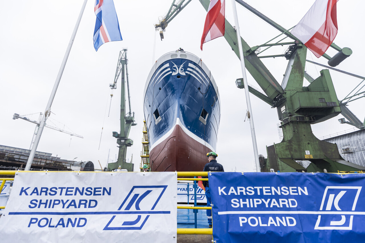 Gdańsk. W stoczni Karstensen Shipyard Poland odbyło się wodowanie jednostki Asgrimur Halldorsson