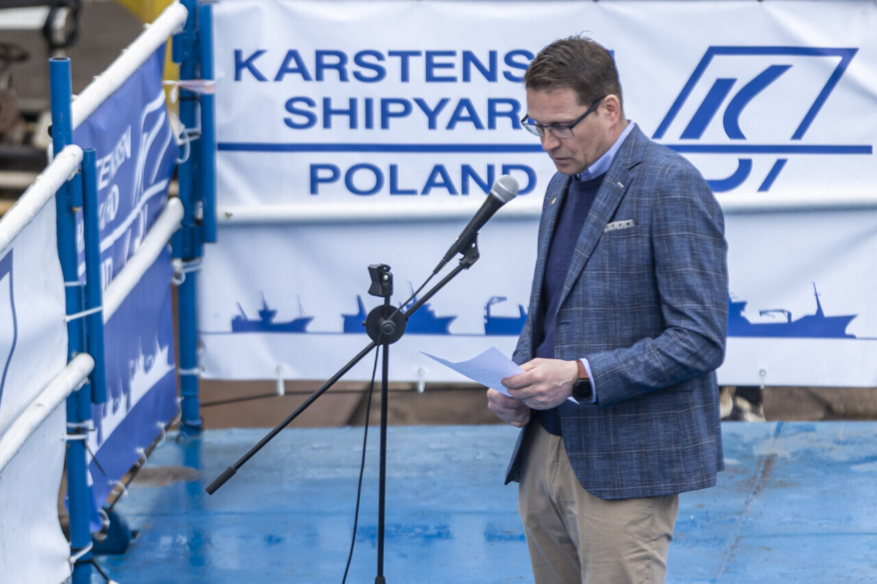 Gdańsk. W stoczni Karstensen Shipyard Poland odbyło się wodowanie jednostki Asgrimur Halldorsson