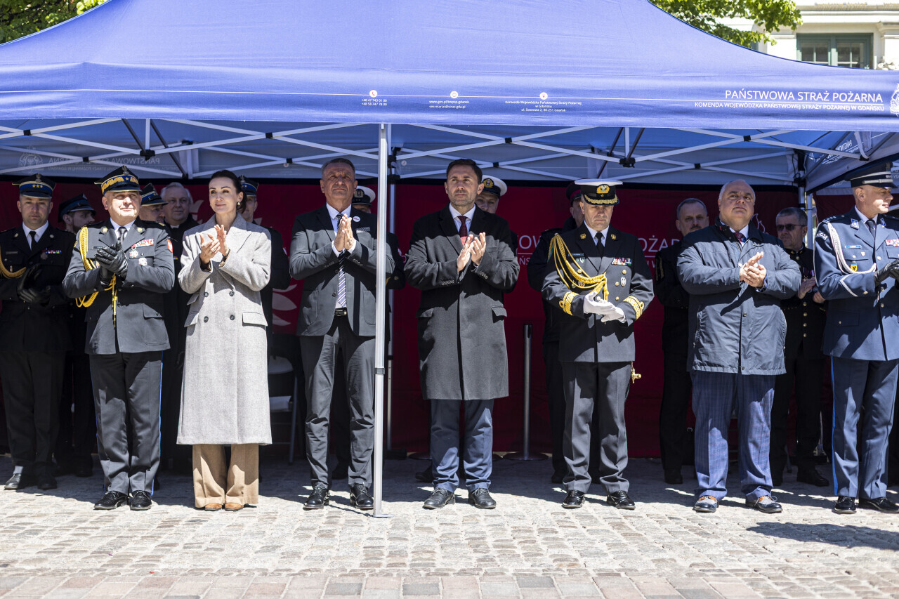Gdańsk. Na Długim Targu odbył się uroczysty apel z okazji Wojewódzkich Obchodów Dnia Strażaka. W uroczystościach udział wzięli Wojewoda Pomorska Beata Rutkiewicz, Wicemarszałek woj. pomorskiego Leszek Bonna oraz Piotr Borawski, Z-ca Prezydenta ds. mobilności i bezpieczeństwa