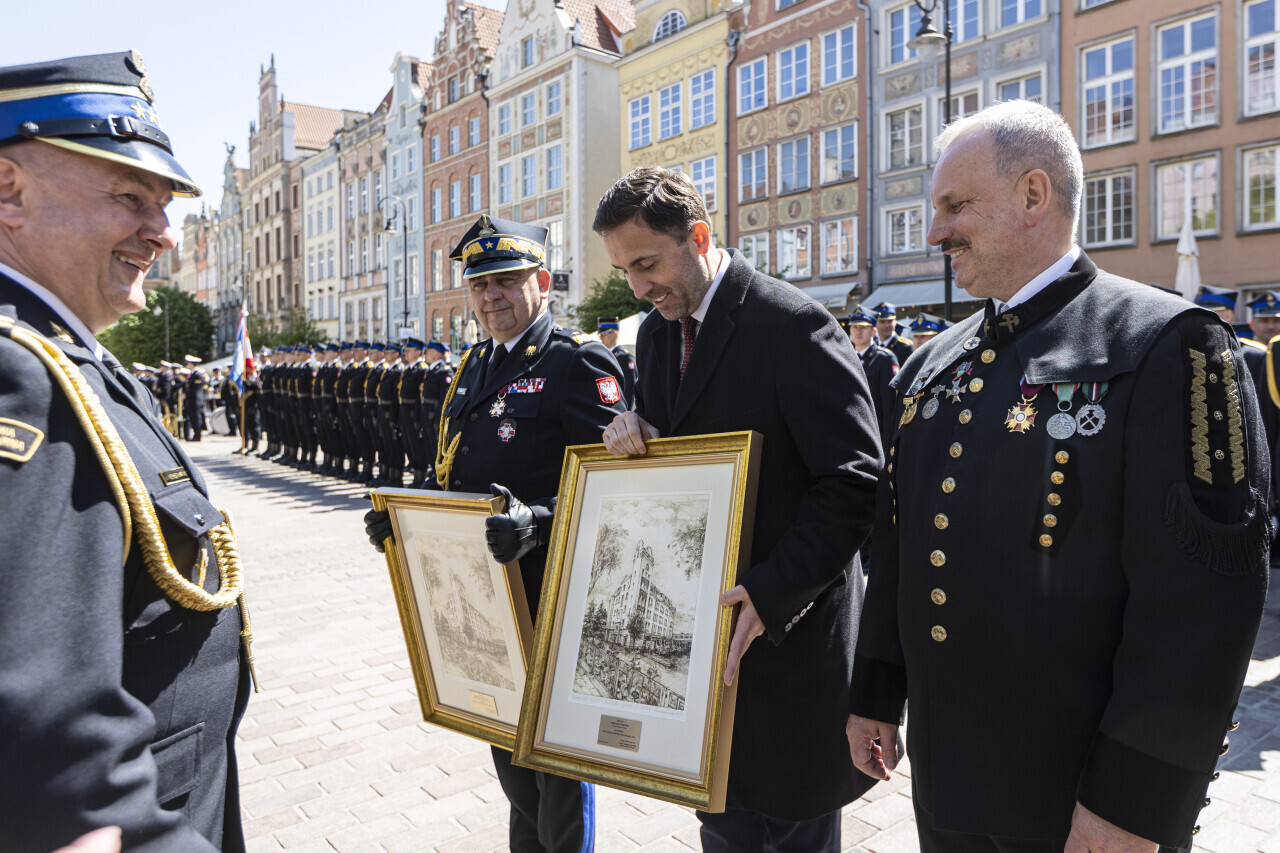 Gdańsk. Na Długim Targu odbył się uroczysty apel z okazji Wojewódzkich Obchodów Dnia Strażaka. W uroczystościach udział wzięli Wojewoda Pomorska Beata Rutkiewicz, Wicemarszałek woj. pomorskiego Leszek Bonna oraz Piotr Borawski, Z-ca Prezydenta ds. mobilności i bezpieczeństwa