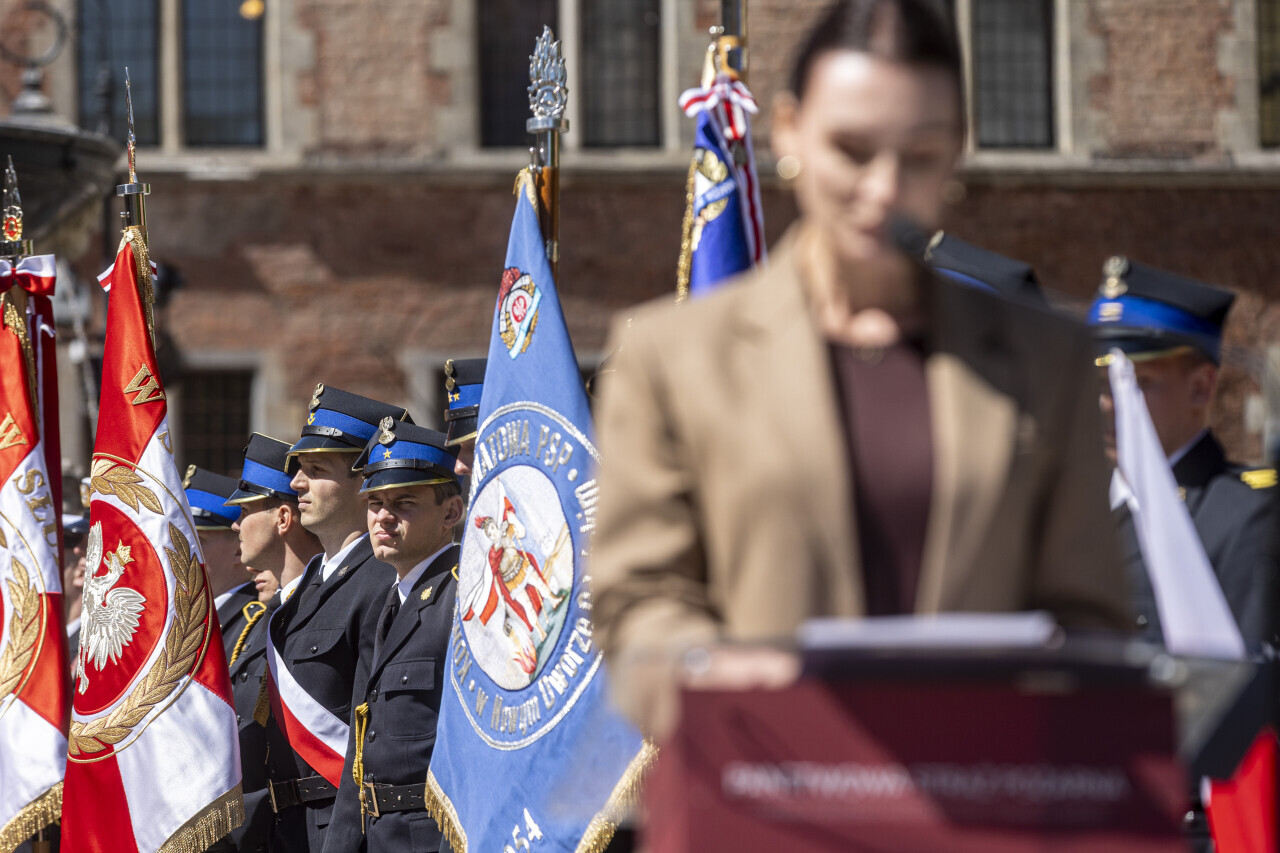 Gdańsk. Na Długim Targu odbył się uroczysty apel z okazji Wojewódzkich Obchodów Dnia Strażaka. W uroczystościach udział wzięli Wojewoda Pomorska Beata Rutkiewicz, Wicemarszałek woj. pomorskiego Leszek Bonna oraz Piotr Borawski, Z-ca Prezydenta ds. mobilności i bezpieczeństwa