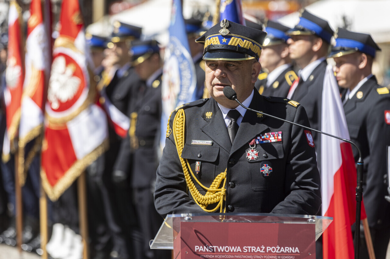 Gdańsk. Na Długim Targu odbył się uroczysty apel z okazji Wojewódzkich Obchodów Dnia Strażaka. W uroczystościach udział wzięli Wojewoda Pomorska Beata Rutkiewicz, Wicemarszałek woj. pomorskiego Leszek Bonna oraz Piotr Borawski, Z-ca Prezydenta ds. mobilności i bezpieczeństwa