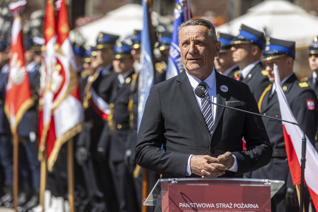 Gdańsk. Na Długim Targu odbył się uroczysty apel z okazji Wojewódzkich Obchodów Dnia Strażaka. W uroczystościach udział wzięli Wojewoda Pomorska Beata Rutkiewicz, Wicemarszałek woj. pomorskiego Leszek Bonna oraz Piotr Borawski, Z-ca Prezydenta ds. mobilności i bezpieczeństwa